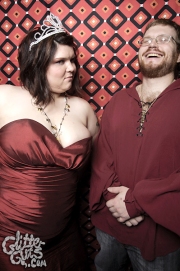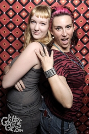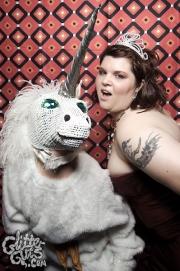 I never ever thought I’d get to do a photobooth at The Mutiny, which is a shame because it’s one of my favorite bars ever, and the one I go to for important events. I spent my 21st birthday there watching Mike the Midget’s band open up for my friends One Last Walk, I watched the White Sox win the world series before a KK Rampage show, and there was no music, save for the occasional selection on the jukebox on the somber night George W. Bush won his reelection. On a brighter note, I’ve seen a fair share of unicorns there: first on a flu ridden Halloween show where art-cabaret weirdos The Walkie Talkies, opening for Indian Jewelry, vivisected a stuffed unicorn, tossing entrails of fake blood and dollar store candy all over the room. The second was tonight, where a unicorn in a bikini jumped out of a (cardboard) cake and did a striptease for the birthday girl, fullfilling the flyer’s claims of something jumping out of a cake.